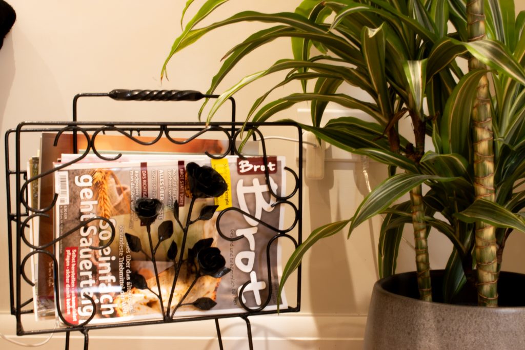 This middle ground she occupies is elegantly reflected in her home, where German and English books grace the shelves, and amidst the contemporary kitchen furniture stands a rustic cupboard adorned with trinkets from her parents’ home.