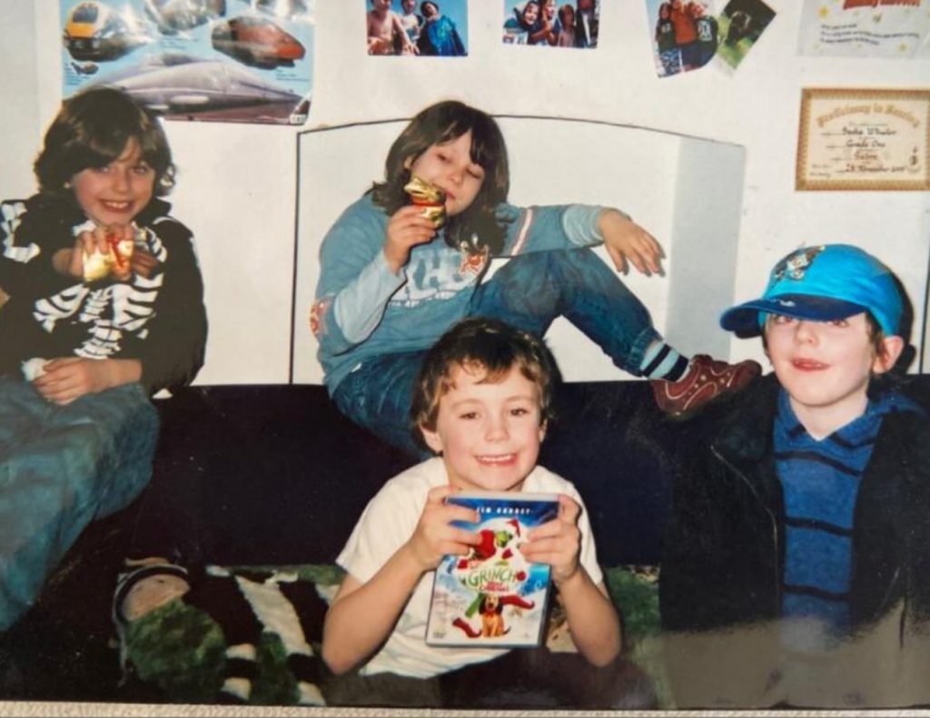 The first time I saw live music was with Sacha. It was Lounge on the Farm. Somewhere in Kent, the four of us, in our eight to ten-year-old wisdom, snuck our way onto a wheelchair vantage ramp to watch Example. It was packed, and I remember the way home talking about how we saw people throwing drinks in the air, people bouncing, and how electric it felt, even if we maybe didn’t use those words to describe it.