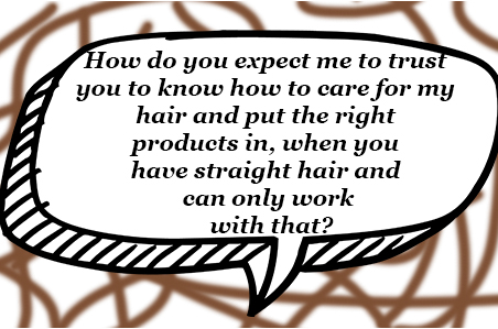 When I’d go into hair shops, they always straighten my hair first before doing it, they said it was easier to work wIth. This led me to believe they only knew how to look after straight hair.